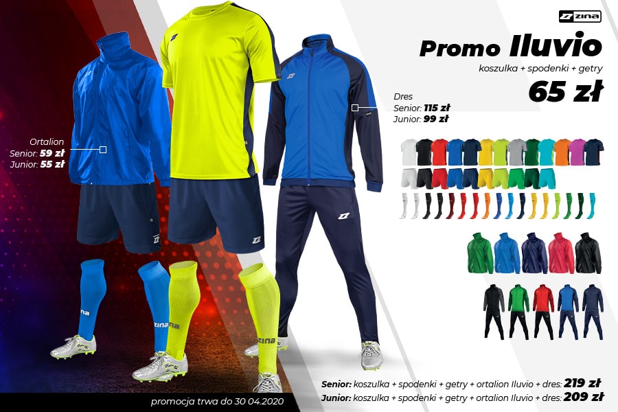 Senior: koszulka ILUVIO + spodenki + getry + kurtka VERSO + dres ILUVIO = 219zł! (cena kat. 449zł)